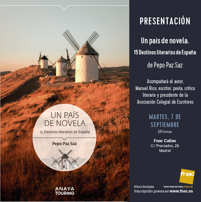 Acompañado de una magnífica selección fotográfica y de una exquisita edición, Un país de novela. 15 destinos literarios de España me ha ofrecido la oportunidad de encontrarme por vez primera con algunas de las novelas en las que el paisaje urbano cobra un protagonismo de correlato objetivo y de mirar con los ojos de la persona que soy ahora algunas otras novelas que leí años (por no decir décadas) atrás. En la búsqueda de esas ciudades he dejado en alguna estación intermedia algunos autores y títulos que no encajaban en mi tarea pero que me produjeron mucho deleite. Hemos incorporado al índice algunos clásicos ineludibles. También las voces de algunas de las mujeres que integran la gloriosa nómina de la narrativa española de los últimos cien (y más) años. Hay encuentros entre la novela policiaca, el neorrealismo y lo social. Están los primeros pasos novelescos de algunos autores que luego han alcanzado la cúspide y algunos otros que despuntan ahora en las listas de los más vendidos. Y está, sobre todo, mi pasión por el viaje y la lectura.